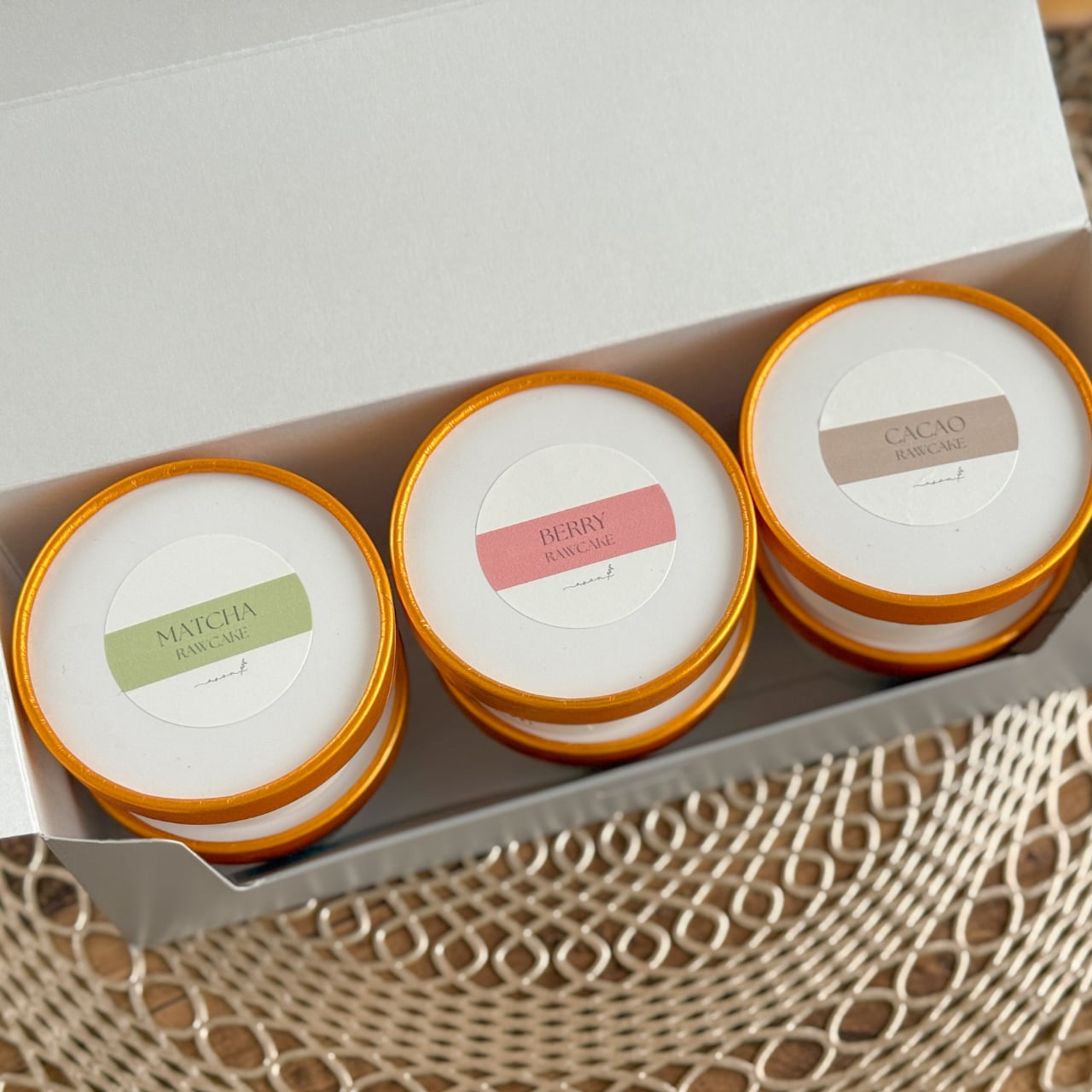 カップのRawムースケーキを、ご注文個数に応じたギフトBOXに入れて発送させていただきます。